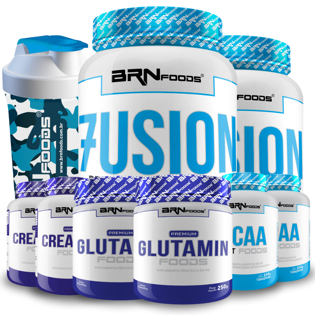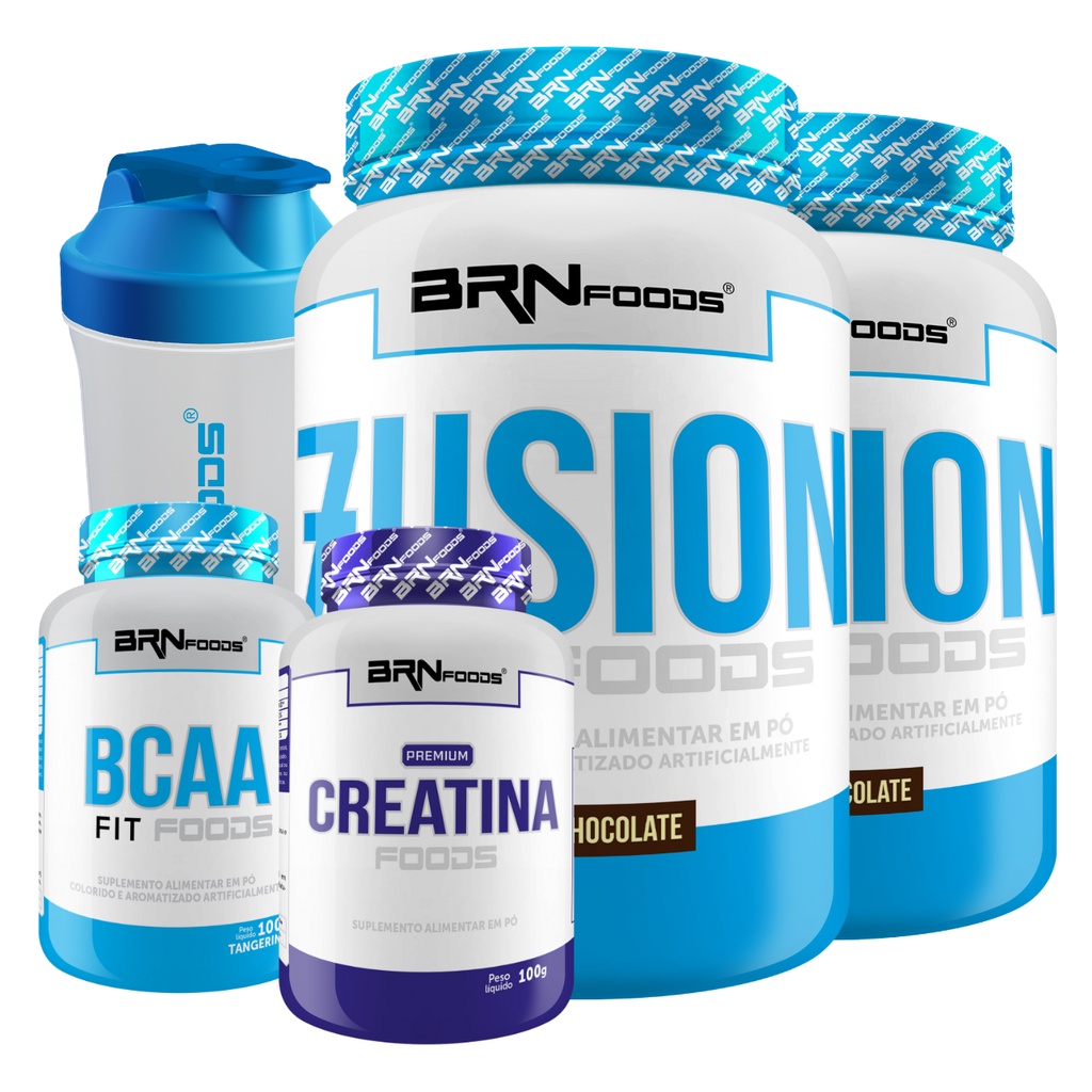Kit 2x Whey Protein Fusion 900 g + BCAA + Creatina 100g + Coqueteleira – BRNFOODS