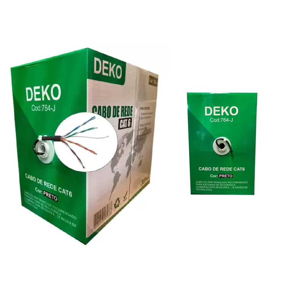 CABO DE REDE CAT6 PRETO 305M 23AWG UTP 4 PARES DEKO 764