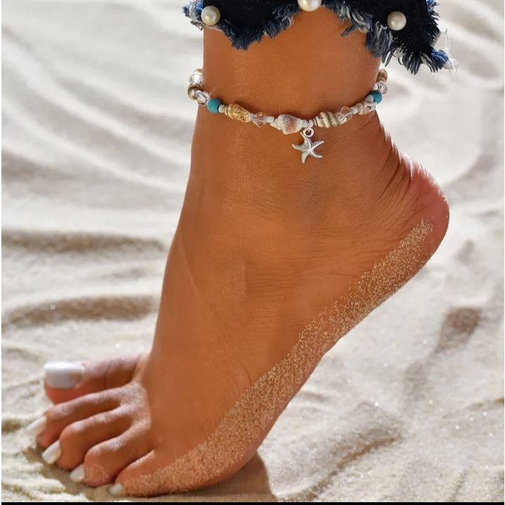 Tornozeleira folheada Pulseira de Pé Feminino Moda Praia