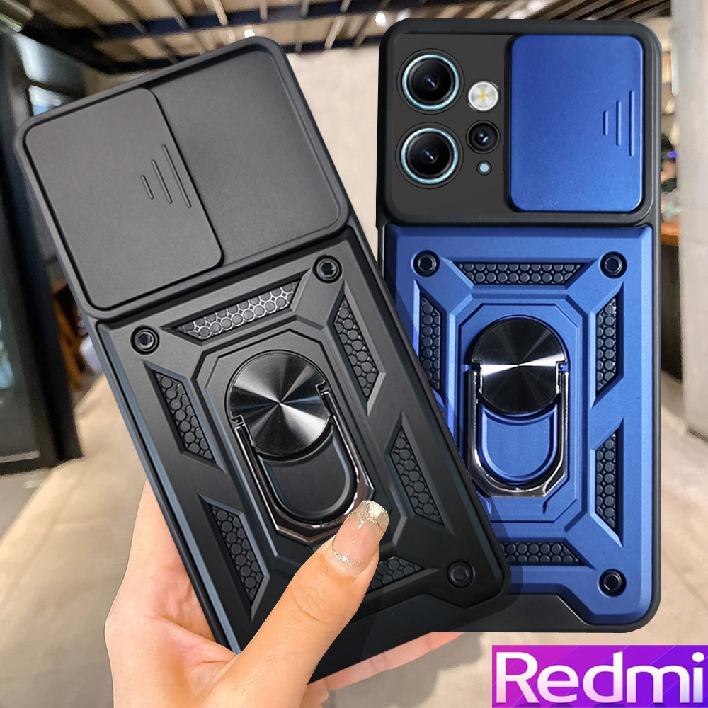 Capa de telefone de proteção de lente à prova de choque de luxo com suporte de metal para Redmi Note 12 Pro Note 12S Note 12 Turbo Note 11 Pro Note 11S Note 10 Pro Note 10S Note 9S Note 9 Pro Redmi 10 5G 10C