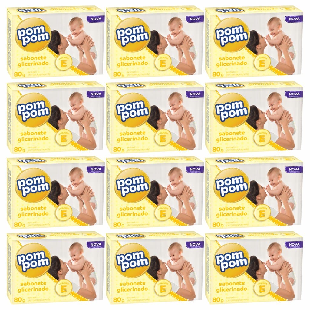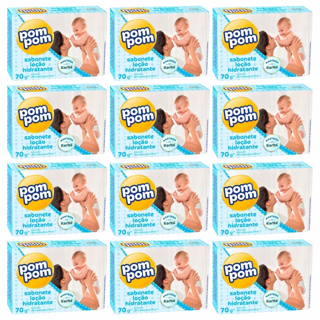Kit 12 Sabonete Barra Infantil Pom Pom Loção Hidratante 70g