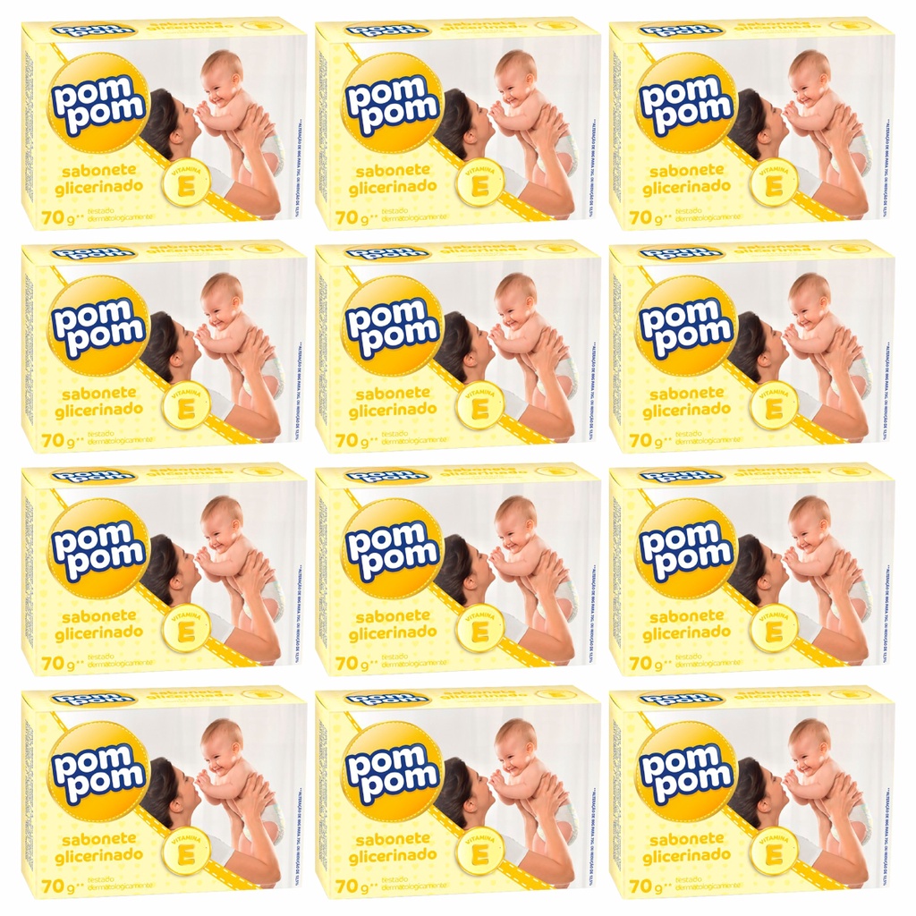 Kit 12 Sabonete Barra Infantil Pom Pom Glicerinado 70g