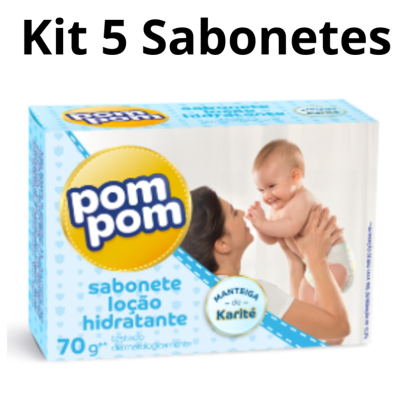 sabonete pom pom infantil hidratante kit c/5 unidades 70g cada