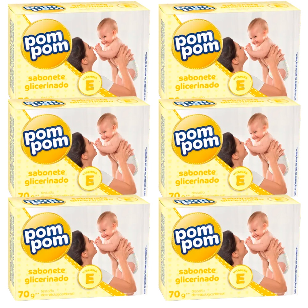 Kit 6 Sabonete Barra Infantil Pom Pom Glicerinado 70g