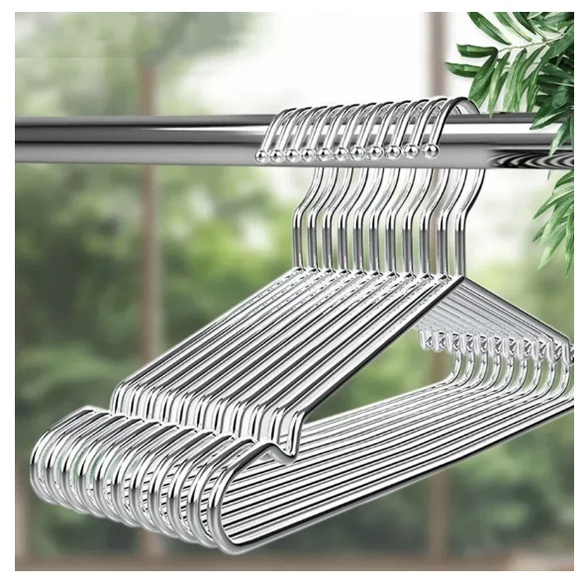 QIU -Kit 10 Cabides Adulto Cor Prata Arame Metal Tintureiro