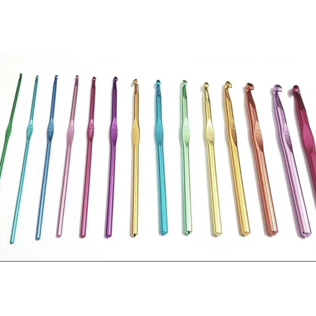 Kit Agulhas Para Crochê De Alumínio Pacote Com 14 Tamanhos