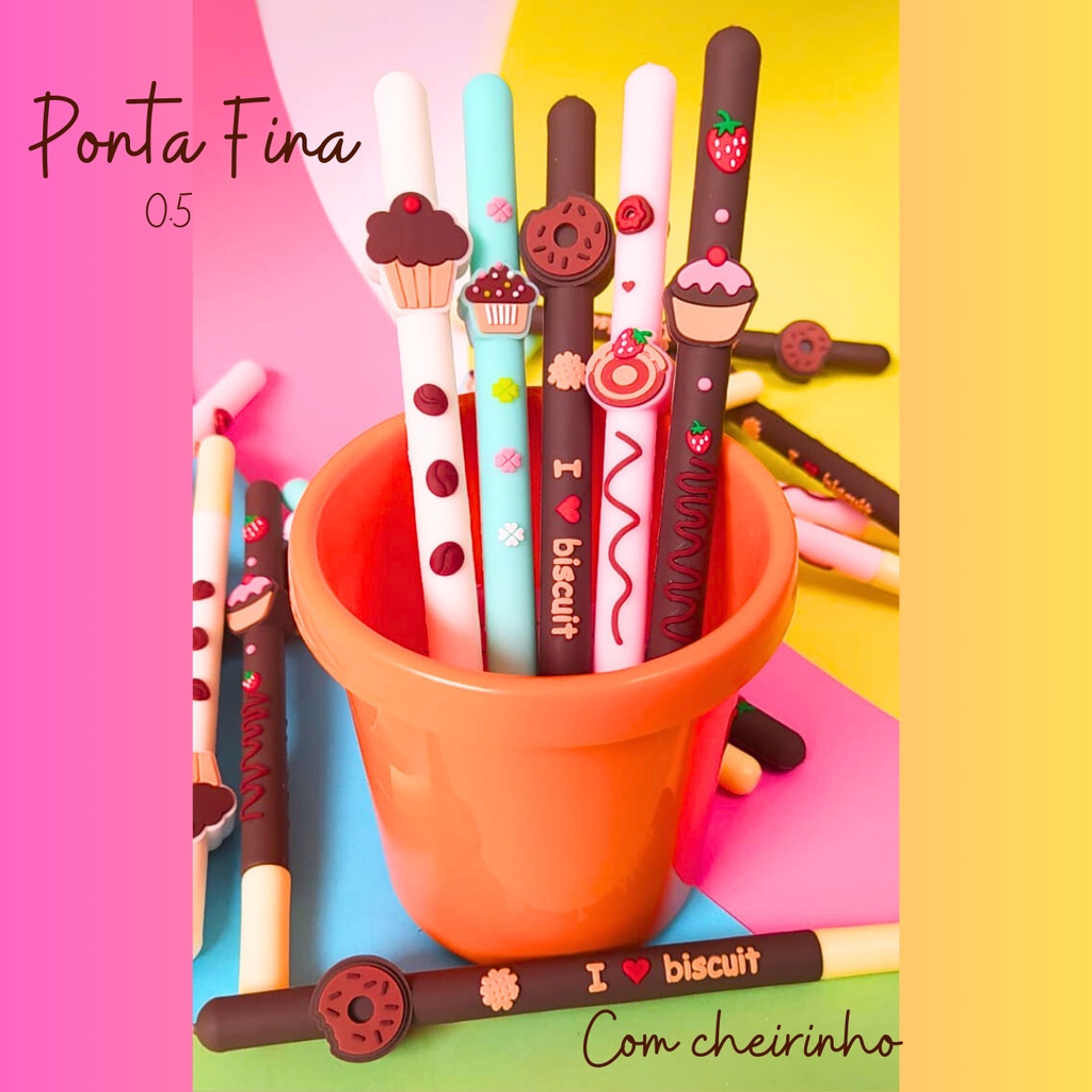 Kit Caneta em Gel Ponta Agulha Esferográfica Cupcakes Perfumada Doce Papelaria Fofa Escritório Estudar Escolar
