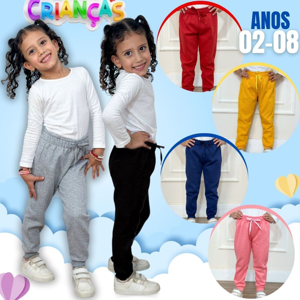Kit 3 Calças Moletom 1 a 16 Infantil Juvenil Masculino Feminino Com Punho Flanelada