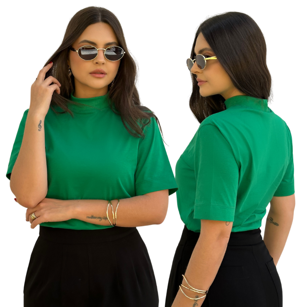 BLUSINHA T-SHIRT FEMININA GOLA ALTA 100% ALGODÃO BLUSA BASICA COM MANGA