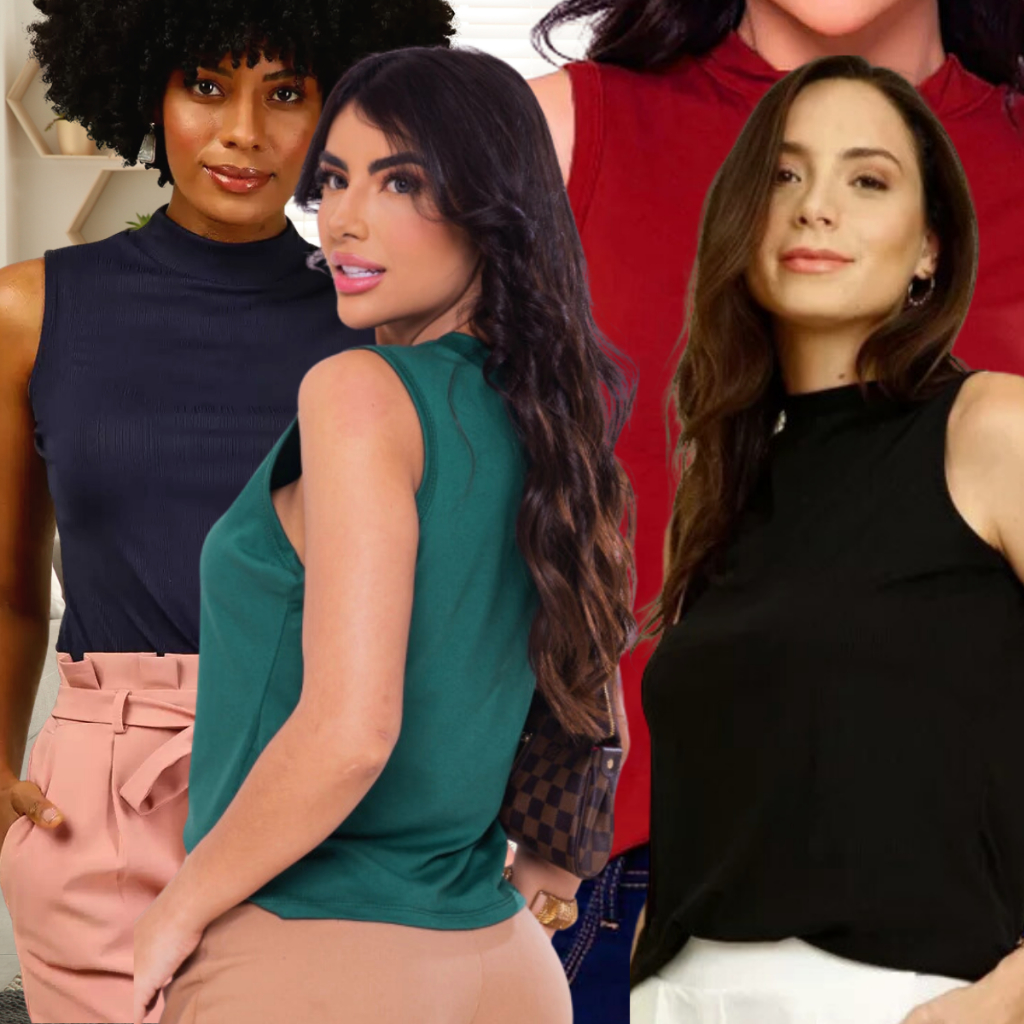 Blusa Regata Feminina Elegante Social Gola Alta Média Lisa Básica Trabalho Festa Fashion Promoção Blusinha Blusas Confortável Vinho Preta Verde Azul Branca Promoção Qualidade Blusas Regatas Femininas Moda Evangélica Cristã CCB Chic Executiva Blogueiras