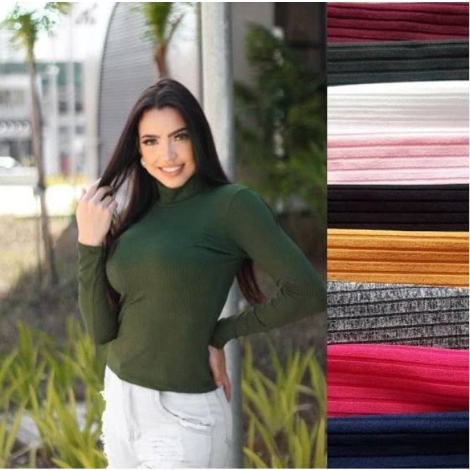 Kit 10 Blusa Canelada Feminina Gola Alta com Manga Blusinha Blogueira