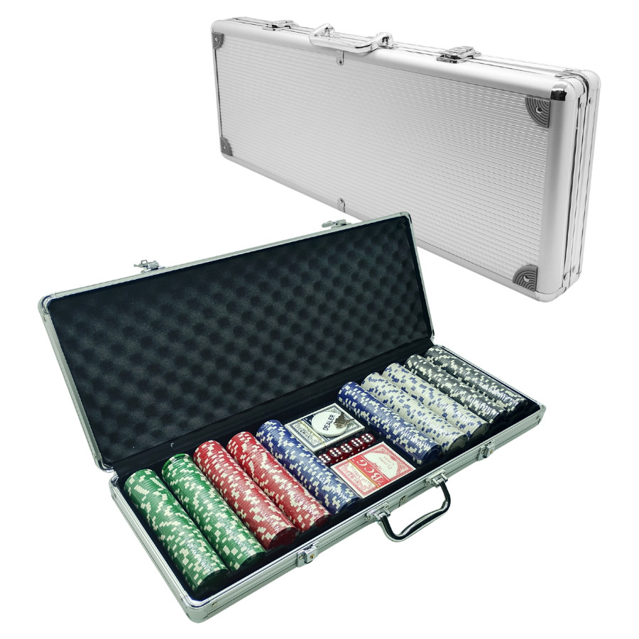 Jogo Maleta Poker Cassino 500 Fichas Baralho Dados Diversão Metálico Kit Completo