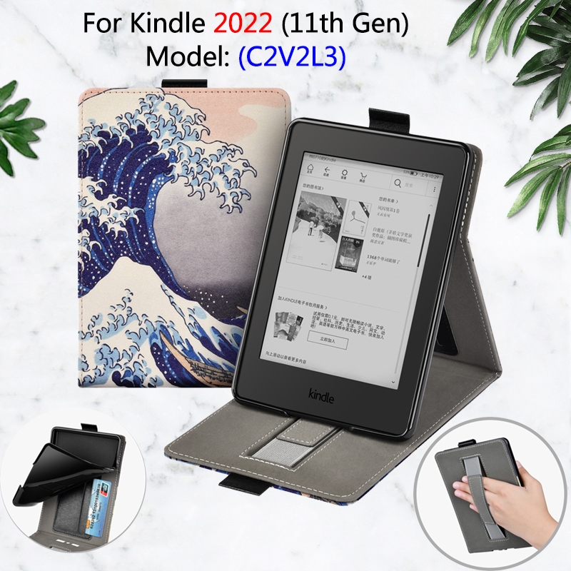 Para Kindle 11th Generation 6.0 inch Ereader Premium PU Leather Smart Case Com Suporte Portátil Capa Padrão De Moda 2022 C2V2L3 Slots De Cartão