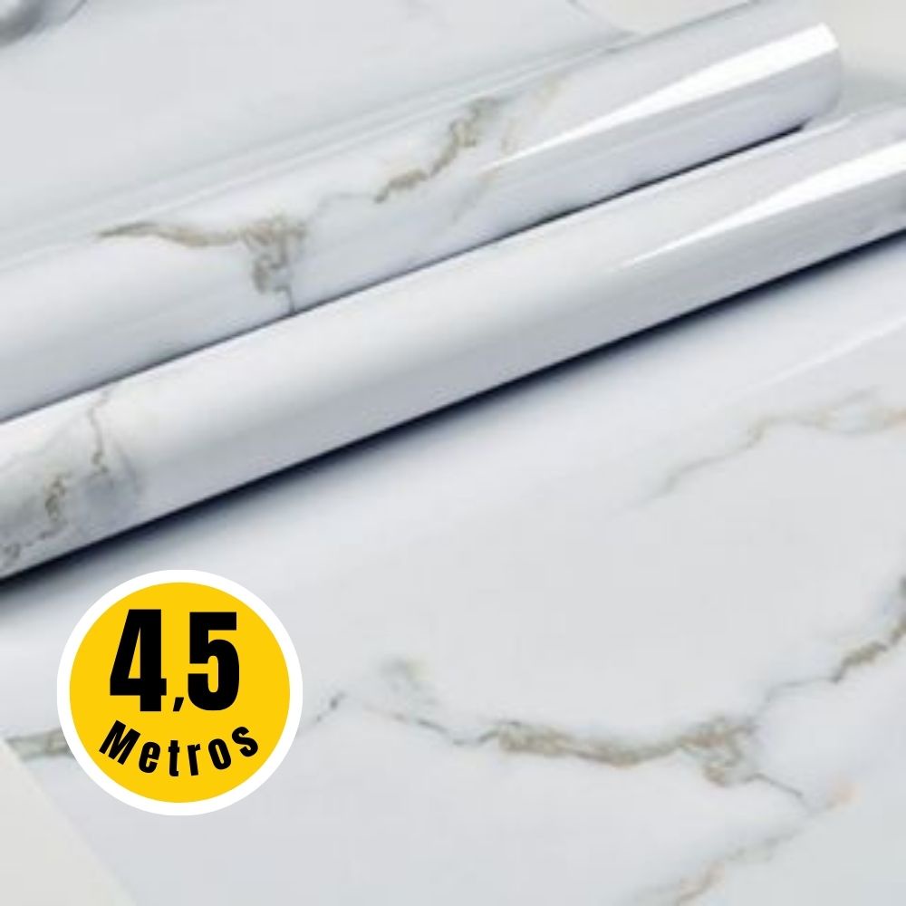 Papel De Parede PREMIUM Mármore Branco 4,5M x 60 Cm Adesivo Alto Brilho Lavavel