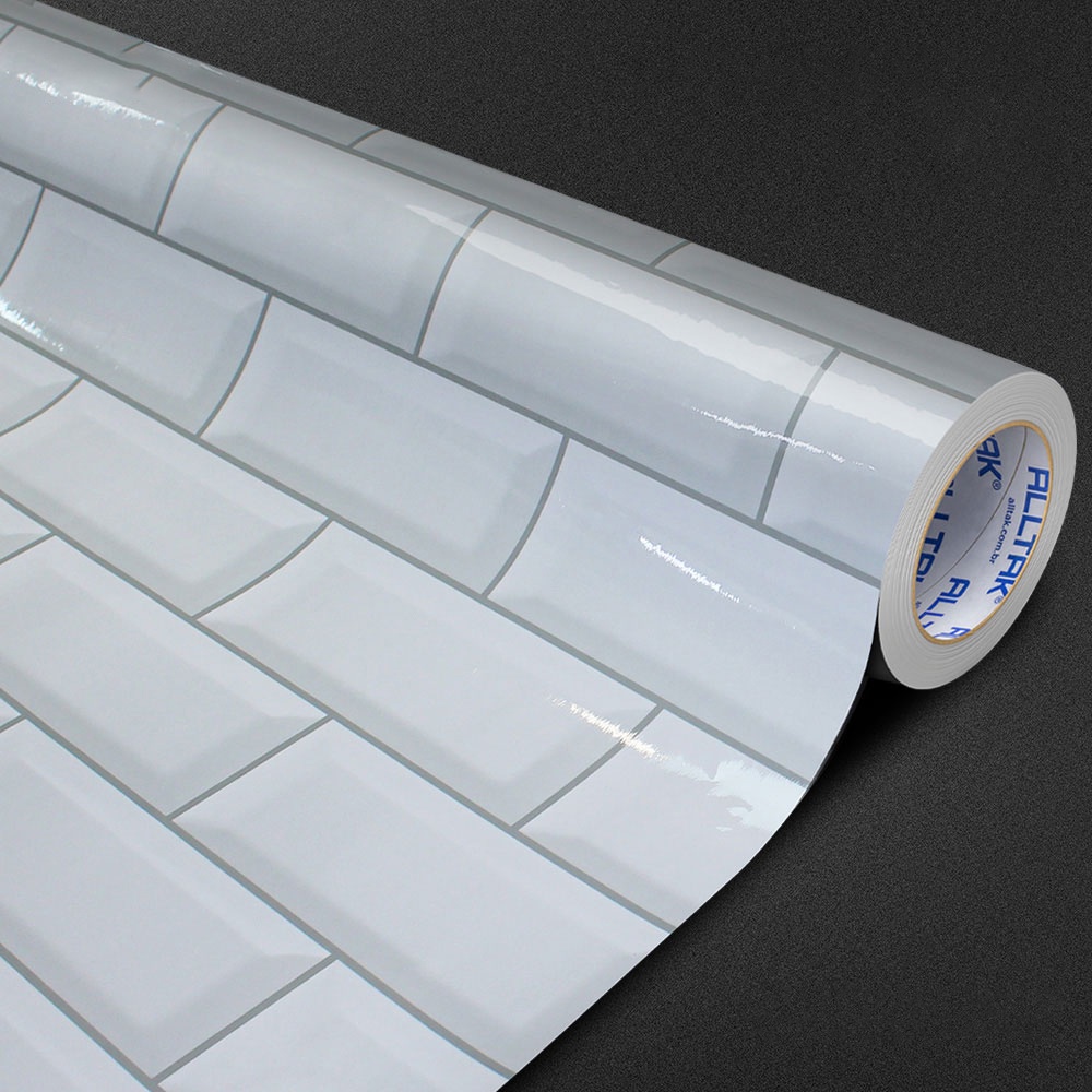 Papel de Parede Lavavél Autoadesivo Alltak Decor Metro Branco Brilho 1,00 X 0,61 - Ref.977D.91
