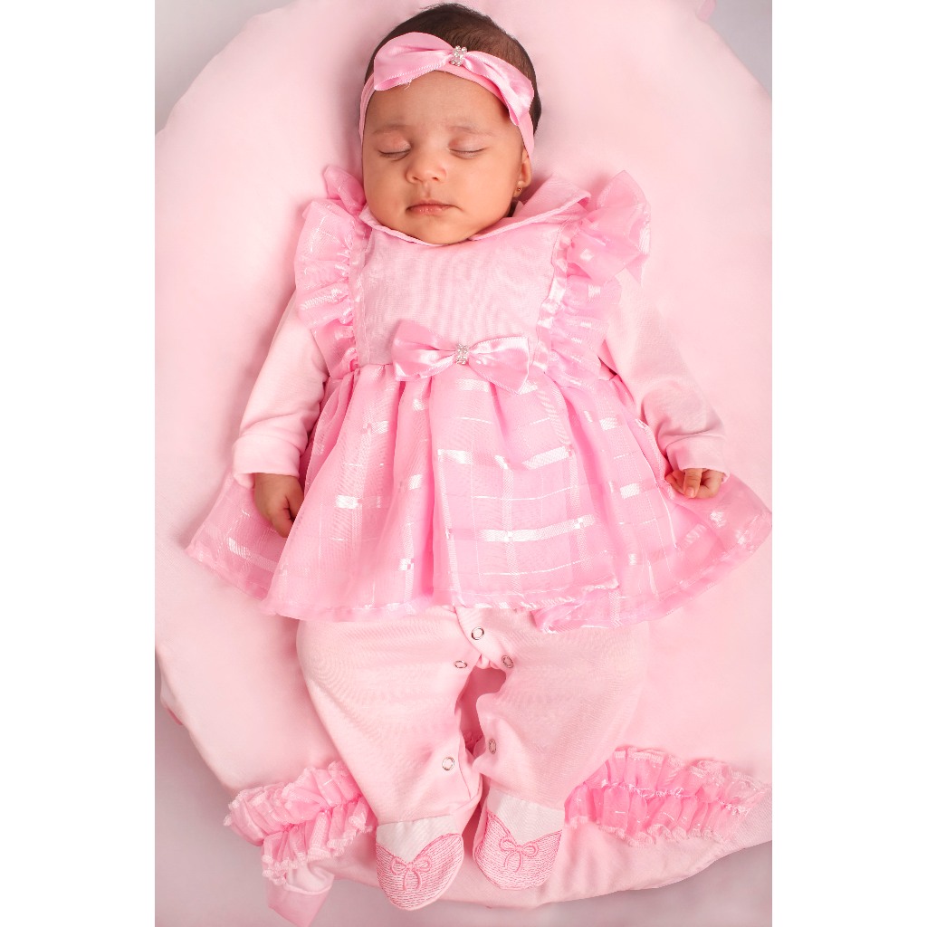 Saída Maternidade Menina Bailarina 04 peças Roupas de Bebê Voal Rosa