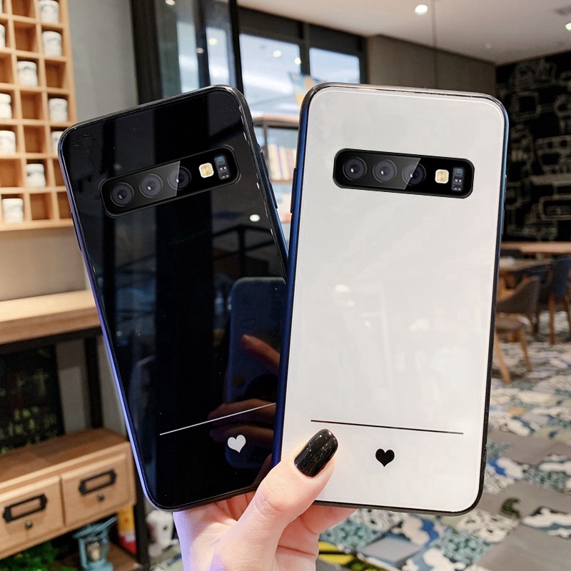 Capa Samsung S10 Plus S10e note 10 Pro Case Simple Slim Love Heart Hard glass Samsung s10 Lite Note 8 9 Capinha