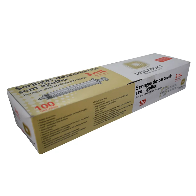 SERINGA DESCARTÁVEL 3 ML BICO LOCK COM 100 UNIDADES DESCARPACK