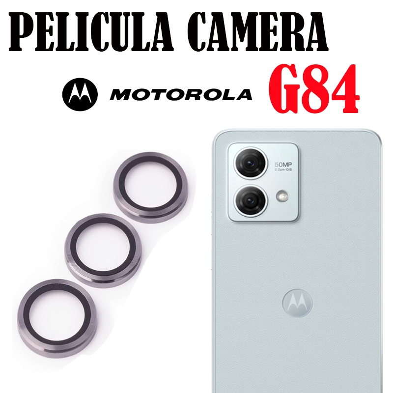 KIT(2pcs)Película De Câmera LISO Para Motorola G84 Protetor De Lente Vidro Temperado Com Anel De Metal