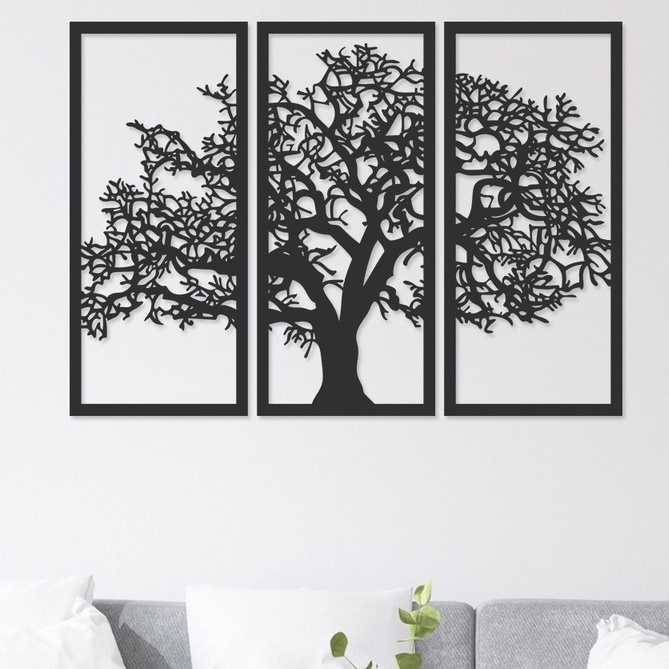 Quadro Decorativo Árvore da Vida MDF Vazado de 3mm Preto Fosco