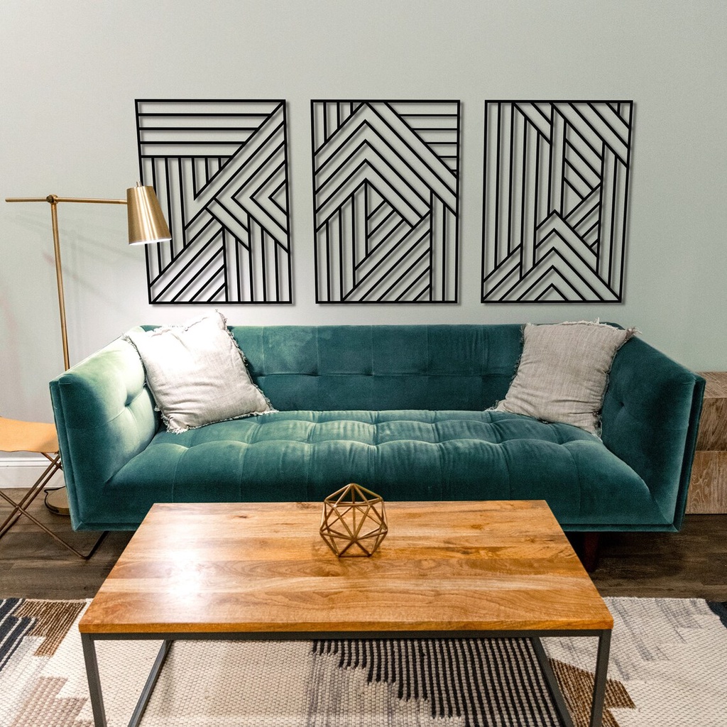 Trio Aplique de Parede vazado Mdf Preto Arte geométrica abstrata quadro decorativo