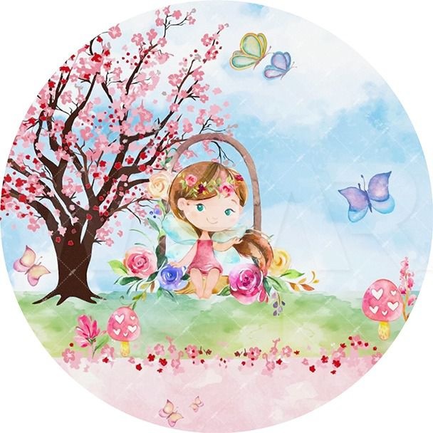 Painel Redondo Sublimado Jardim das Fadas FRD-1370