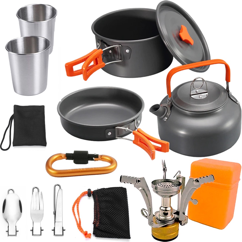 Utensílios de mesa portáteis para camping Kit de panelas conjunto para cozinha ao ar livre Frigideira para camping Viagem, caminhadas Mochilas Conjunto de piquenique