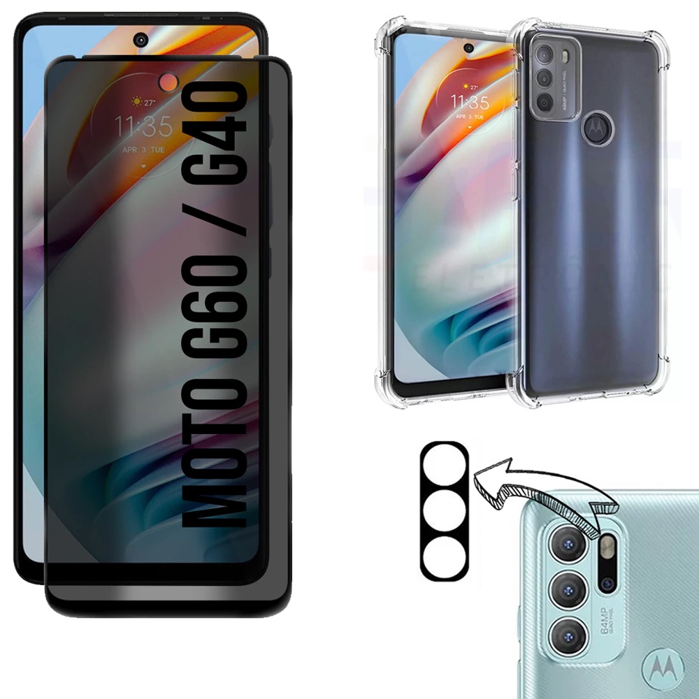 KIT Motorola Moto G60 G60s | Película de Privacidade 3D - Capa Capinha Anti Impacto - Película da Câmera 3D