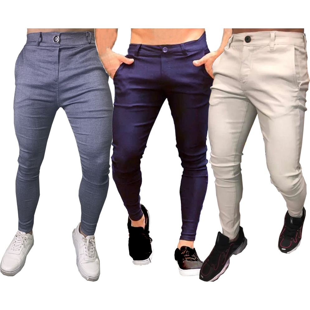 Kit 3 Calça Alfaiataria Masculina Skinny Premium Bengaline