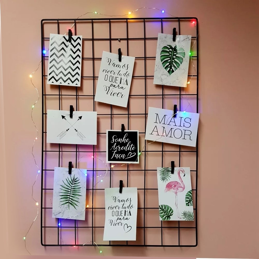 Memory Board, Quadro de Memórias, Tela Aramada, Mural De Fotos e Recados + Mini Prendedores E Fixador De Parede