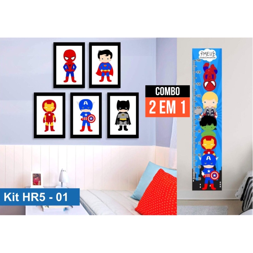 Quadros decorativos - Super Heróis + Régua de crescimento de 1,50 para o quarto e enxoval do seu bebê