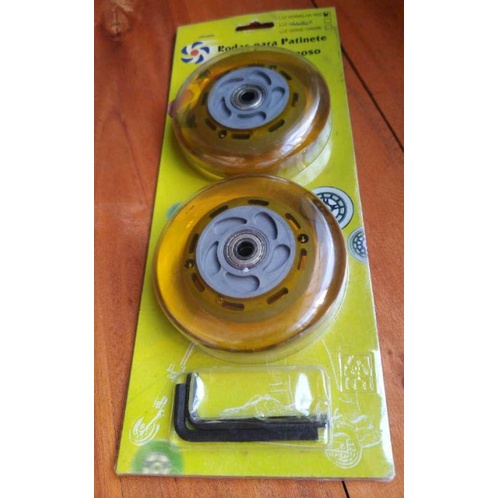 Patinete Rodas de Patinete Gel Com Rolamento. Kit com duas rodas e duas Chaves tipo L na Embalagem 100mm Free Stile Estilo Livre. Sport e Diversão ao ar livre.