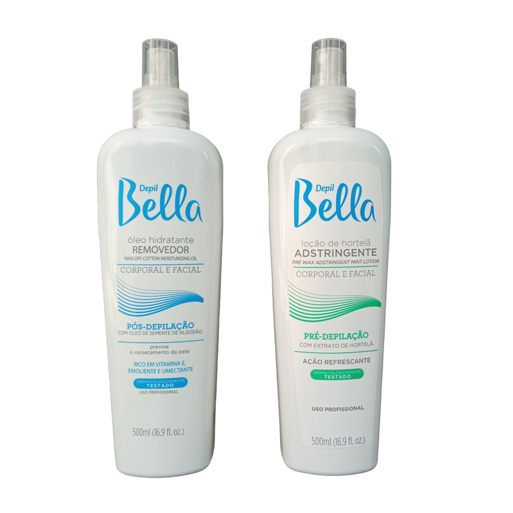 Kit Pre e Pos Depilação C/ Loção + Óleo Depil Bella 500ml
