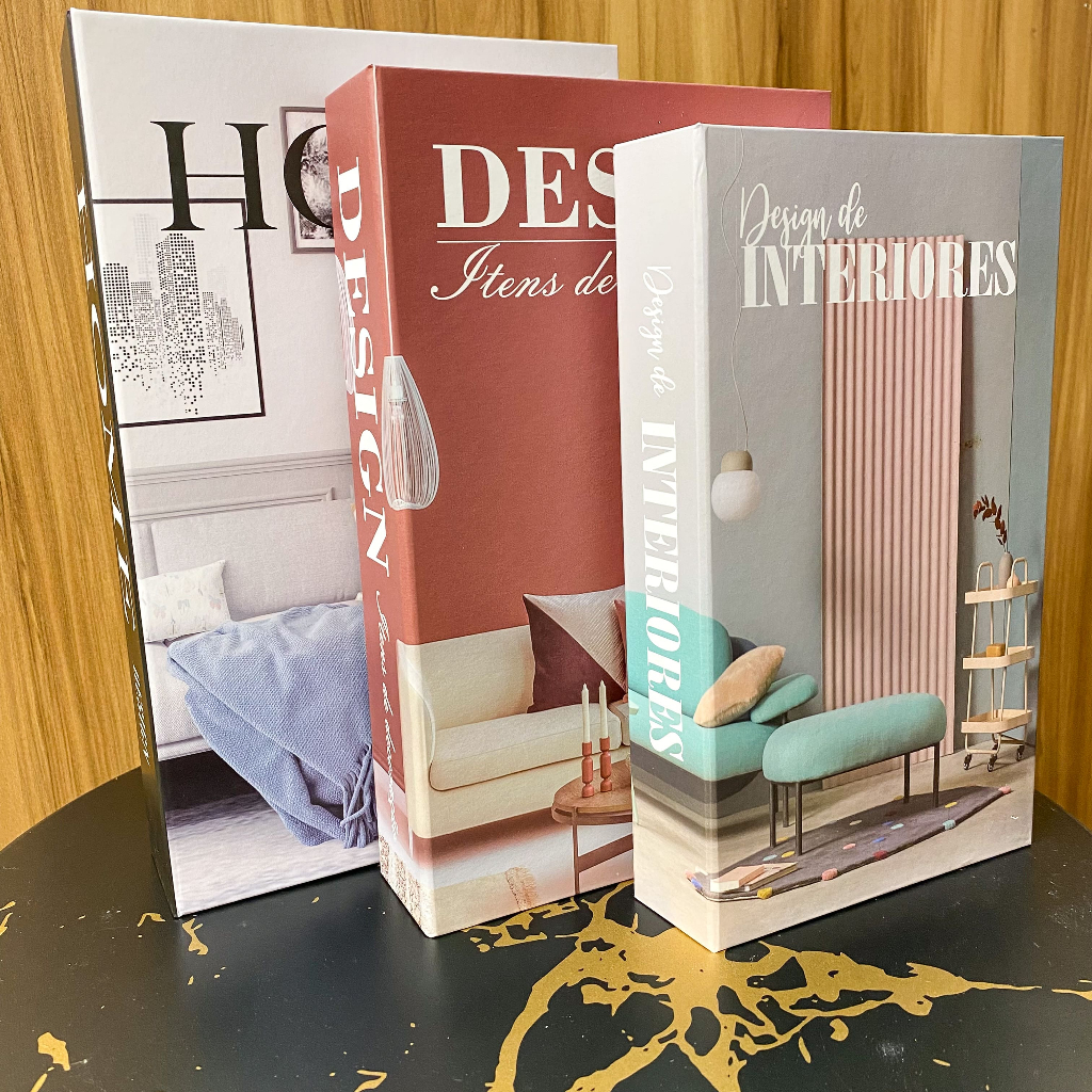 Kit 3 Caixas Livro Decorativo Porta Objetos