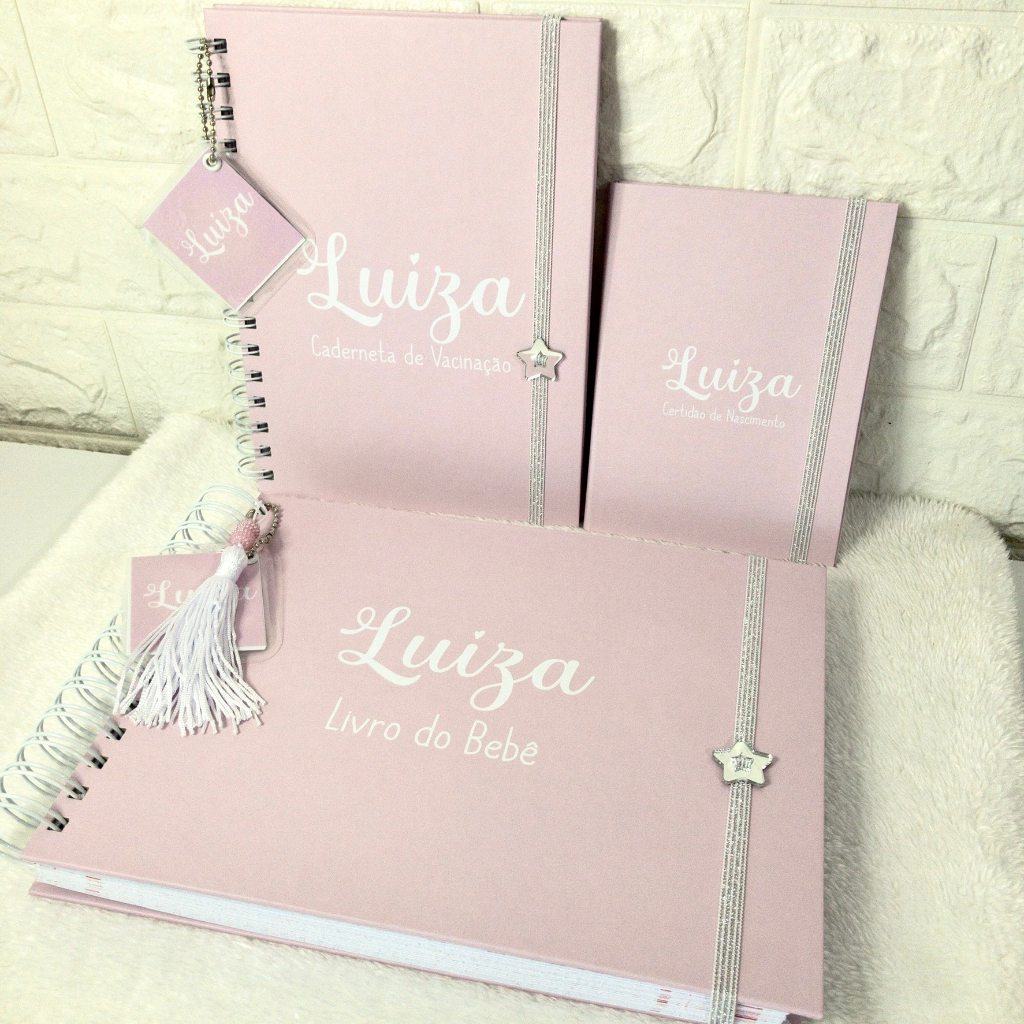 KIT COMPLETO CADERNETA DE VACINA + PORTA DOCUMENTOS + LIVRO DO BEBE - MENINA - PERSONALIZADA