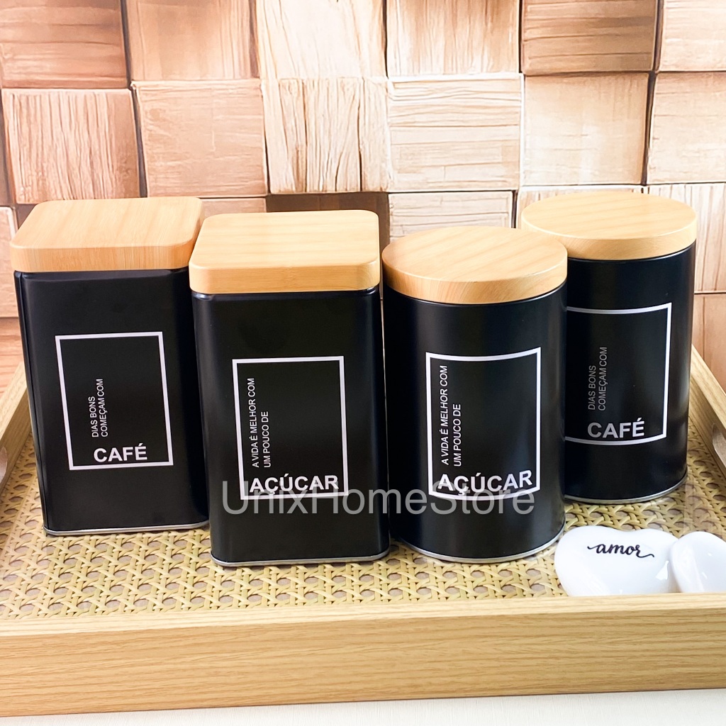 Kit Lata Porta Mantimentos Café Açúcar 1 ou 2 Unidades Multiuso Decorativo Organizador Casa Cozinha