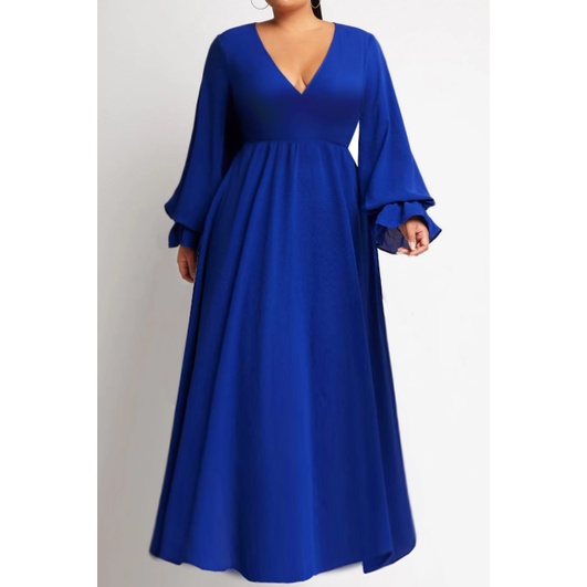 Vestido Plus Size Longo Para Festa, Formatura, Casamento, Decote V, Manga Longa Ps84