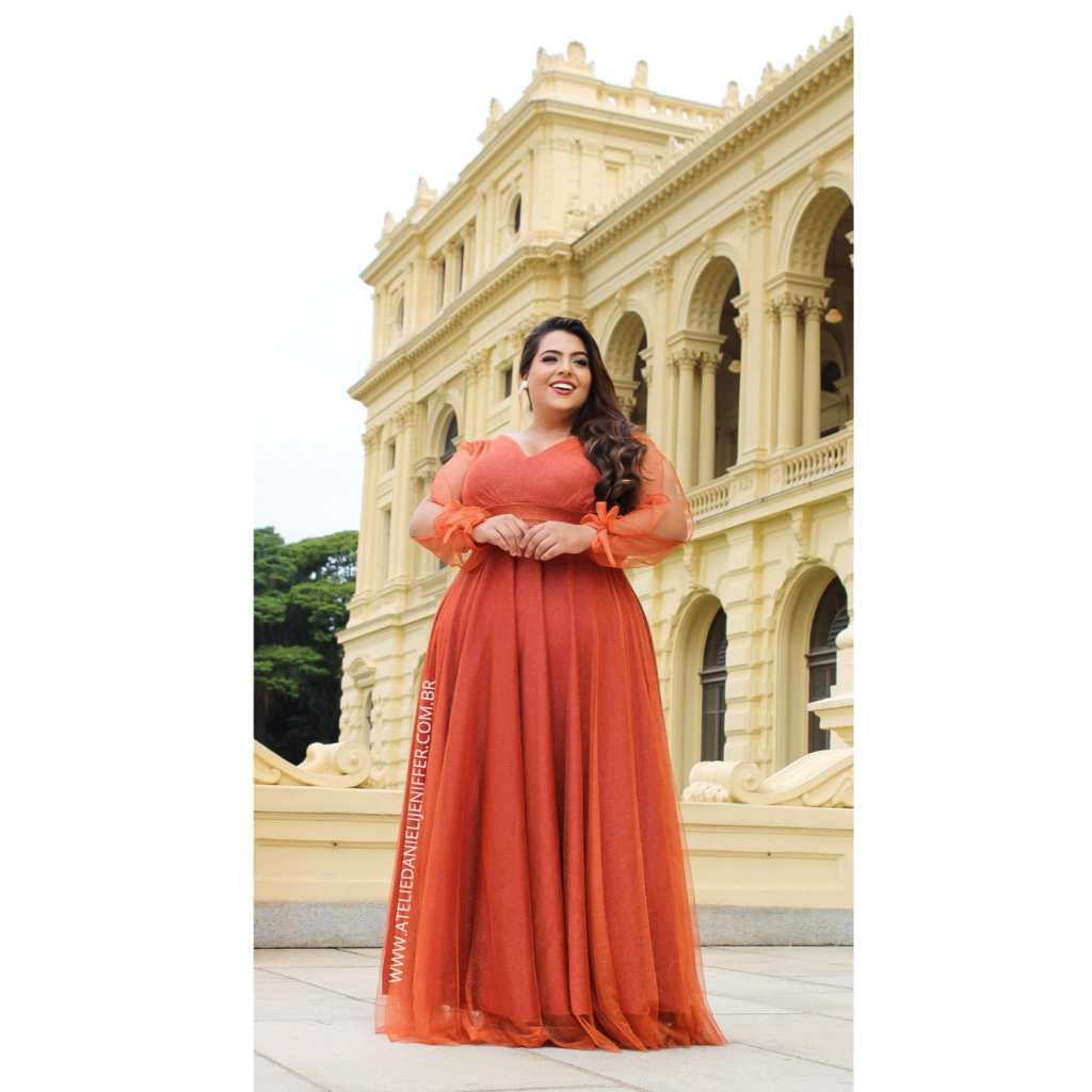 Vestido Tule Longo ideal festas Manga Longa Plus Size