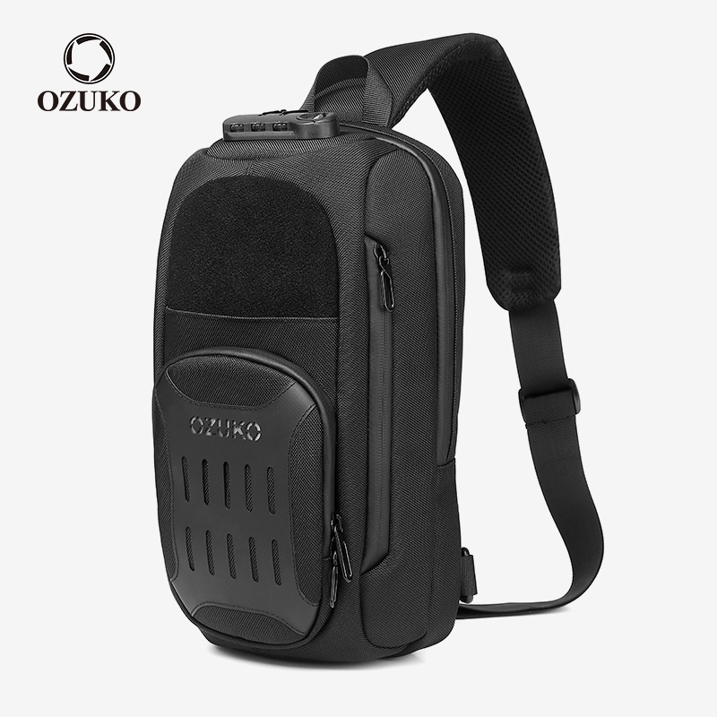 Ozuko Homens Da Moda À Prova D 'Água Saco Do Estilingue Anti Roubo Pacote Peito Ombro Mensageiro Sacos De Carregamento Usb