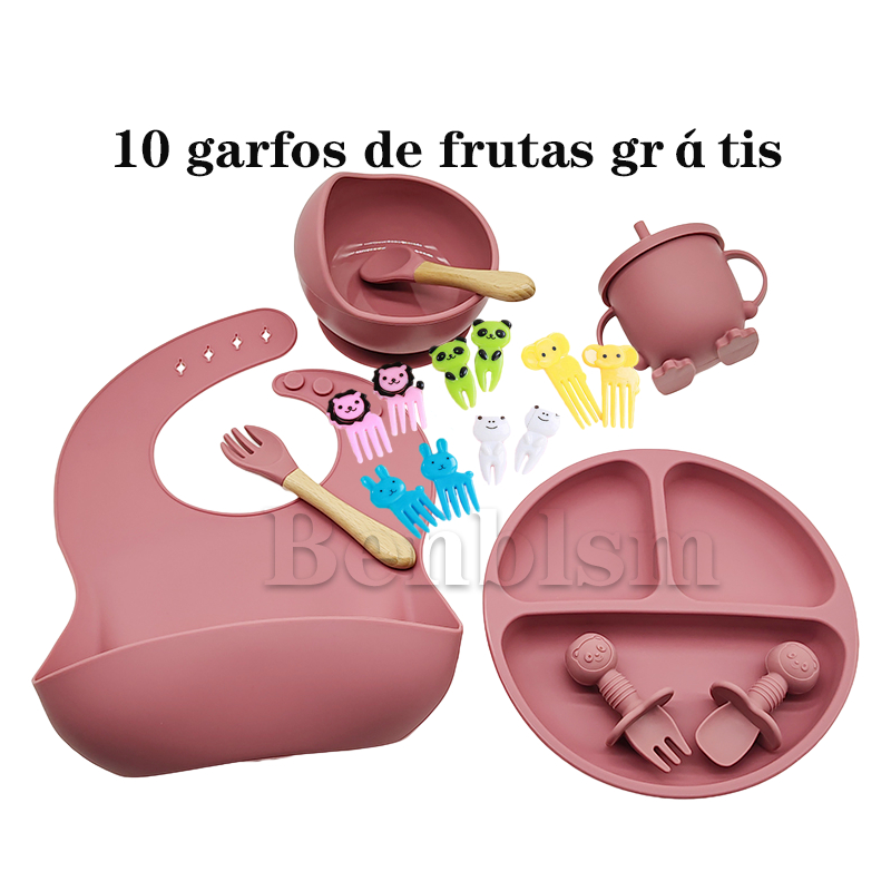 4/6/10Pcs Pratos De Alimentação De Silicone Para Bebês Sucker Bowl Cup Bibs Colher De Garfo Conjunto De Garfos Crianças Jantar Sem Escorregamento BPA Free