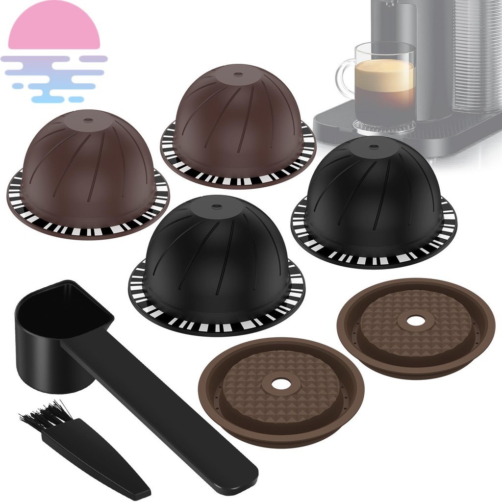 4Pcs Conjunto De Cápsulas De Café Reutilizáveis Com 2 Tampas De Silicone Colher E Escova Recarregável Compatível Para ENV135 ENV150 GCA1 SHOPSKC9218