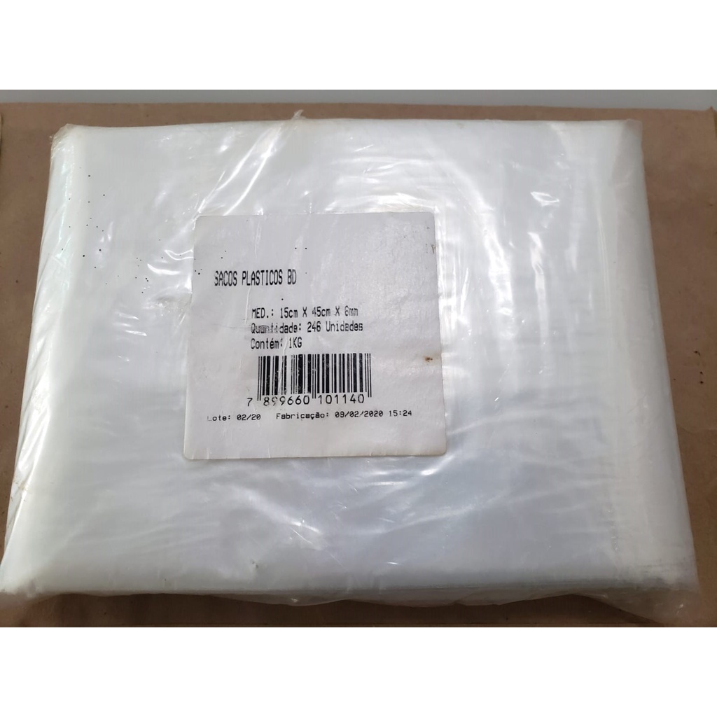 Saco Plástico Transparente p/ algodão doce 15 x 45 cm BD 100% Virgem - 1 KG Aprox. 246 unidades