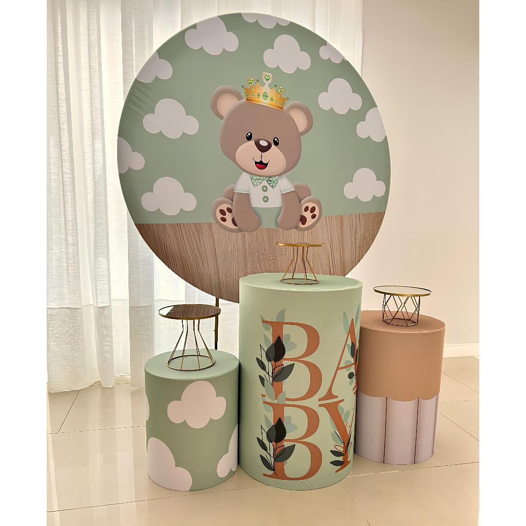 Kit Capas Sublimadas Painel Redondo + Capas Cilindros de Festa Infantil Tema Chá De Bebê