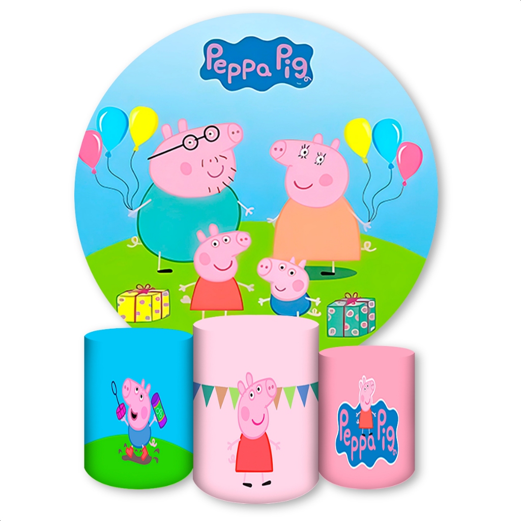 Kit Capa Painel Redondo 1,50 + Trio de Capas para cilindros Festas Aniversario Tema - ENVIO IMEDIATO