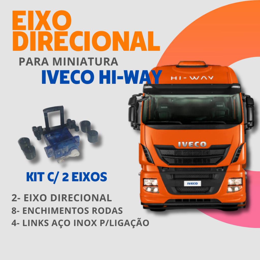 Kit c/2- Eixo direcional c/suporte de servo para miniaturas do Iveco Hi-way