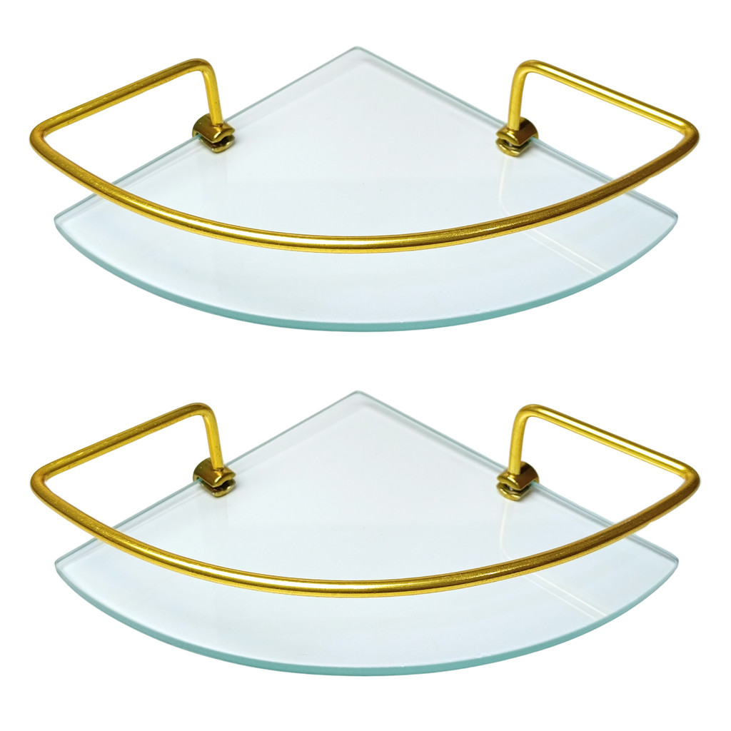 Kit C/ 2 Porta Shampoo de Canto Para Banheiro e Lavabo Suporte Prateleira Dourado Com Vidro Incolor