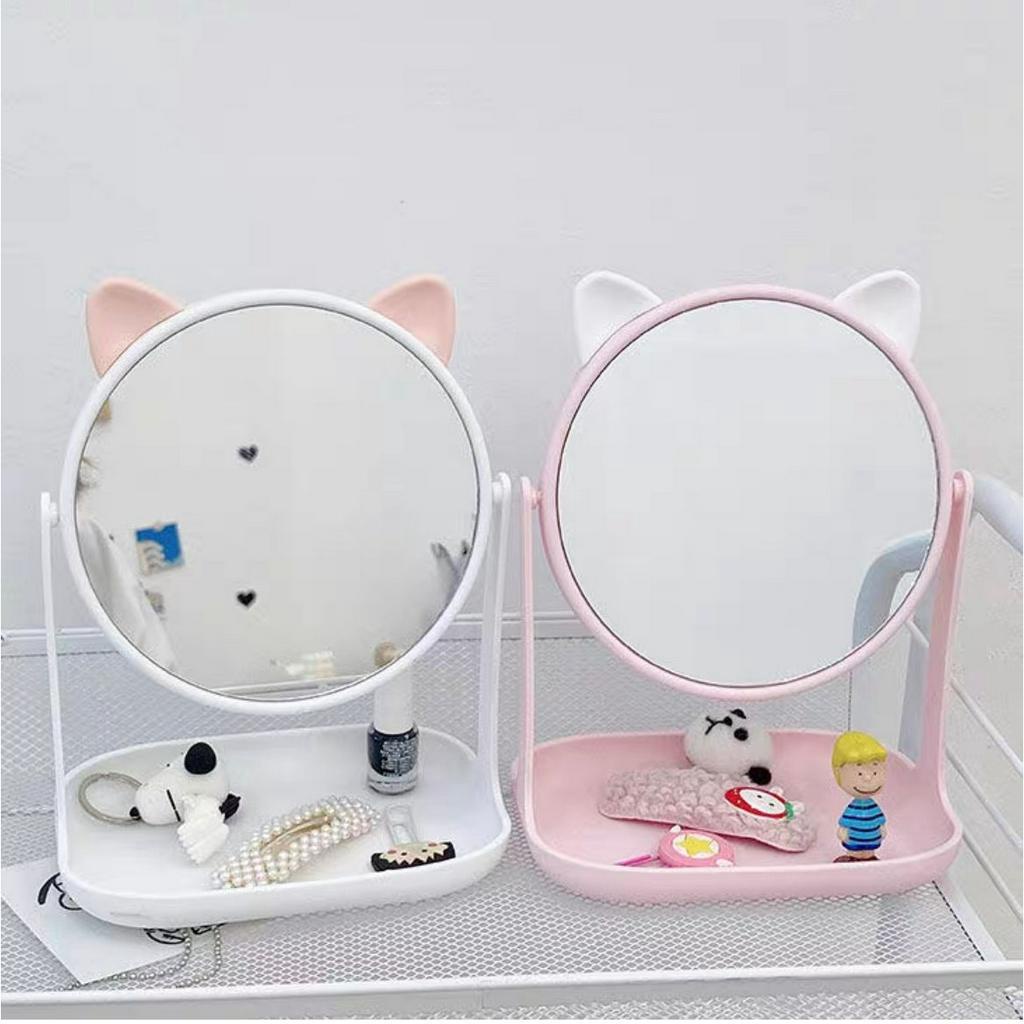 espelho de mesa penteadeira orelhinha de gatinho/Fawn com porta maquiagem bijuterias formato redondo