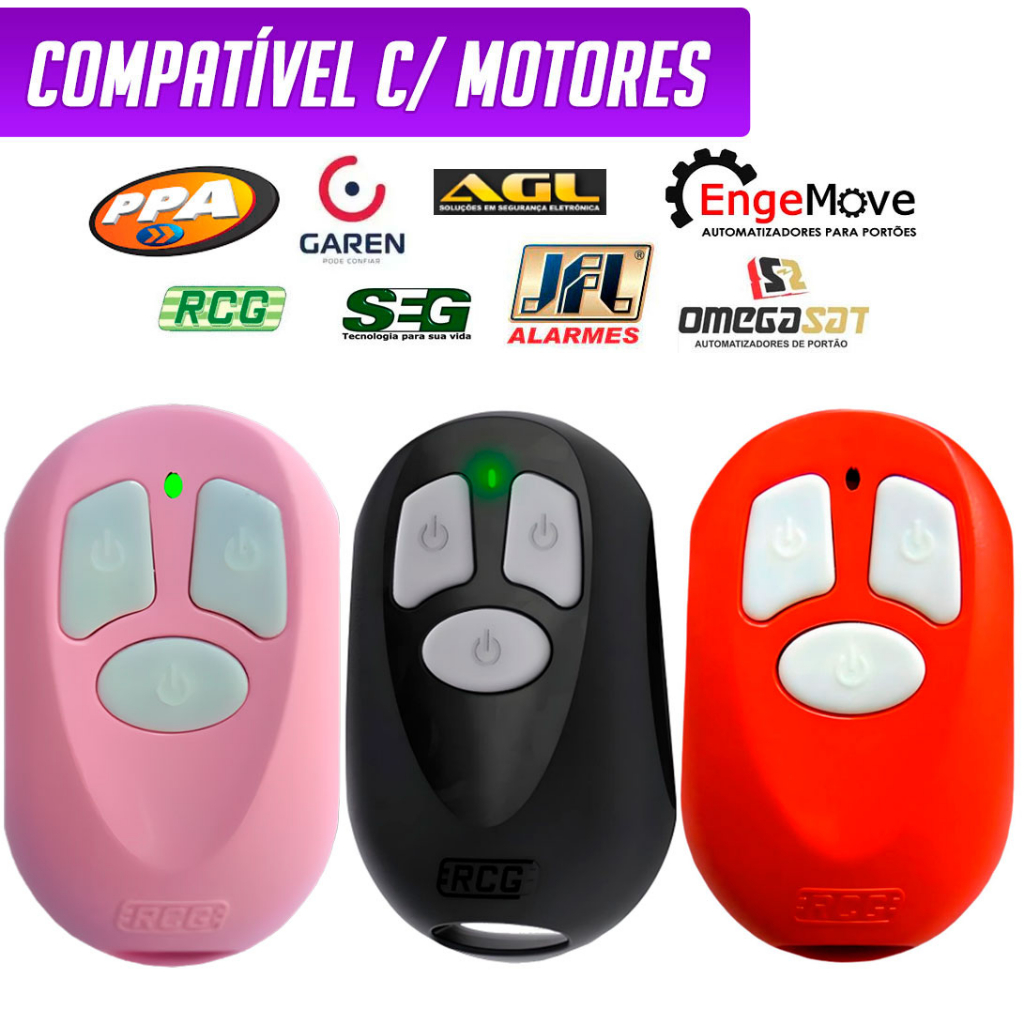 Controle RCG De Portão E Alarme 433 MHZ P/ PPA GAREN SEG AGL PRETO/ROSA/VERMELHO