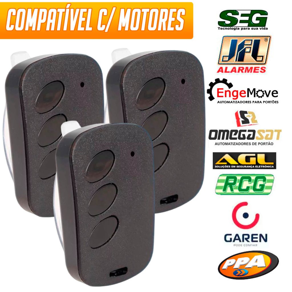 3x Controle de portão eletrônico e Alarme 433,92 P/ PPA RCG GAREN SEG AGL
