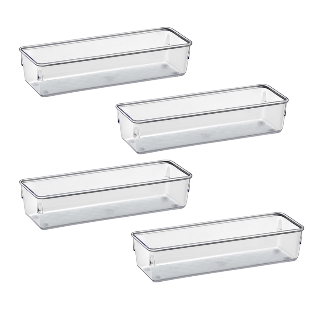 Kit 4 Organizadores Retangular Multiuso para Gavetas, Pote Acrílico Cristal Grande